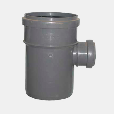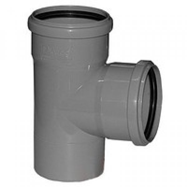 Тройник ПВХ для наружной канализации в комплекте с резиновым уплотнительным кольцом.
